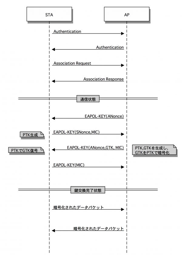 下記にWPA2のシーケンスを示します(説明はTKIPの項を参照ください)。